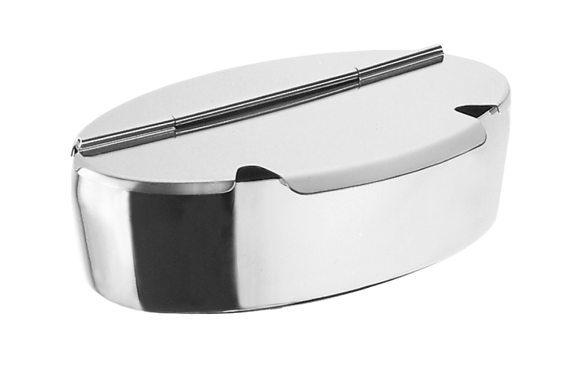 Die ovale Zuckerdose von Motta ist aus poliertem Edelstahl gefertigt und ist optimal zum Aufbewahren und Anbieten von losem Zucker oder auch von Zuckerpäckchen geeignet. Die mit zwei Löffelaussparungen versehene Zuckerdose ist 20 cm lang und 13 cm tief. Sie besticht durch ihr zeitloses und elegantes Design.