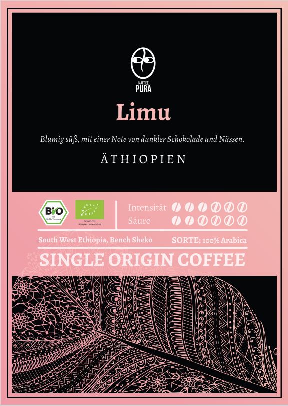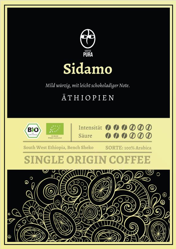 KAFFEE PURA Sidamo, Bonga Forest und Limu sind 100 % sortenreine Bio-Arabica-Kaffees aus Äthiopien. Unser Kaffee ist Bio zertifiziert und steht für einen direkten, fairen Handel mit den Kaffeebauern Äthiopiens.